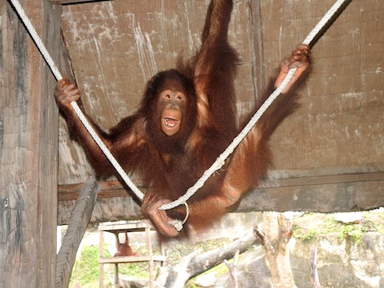 But a 6-year old female orangutan is kept outside for the money-making photo sessions