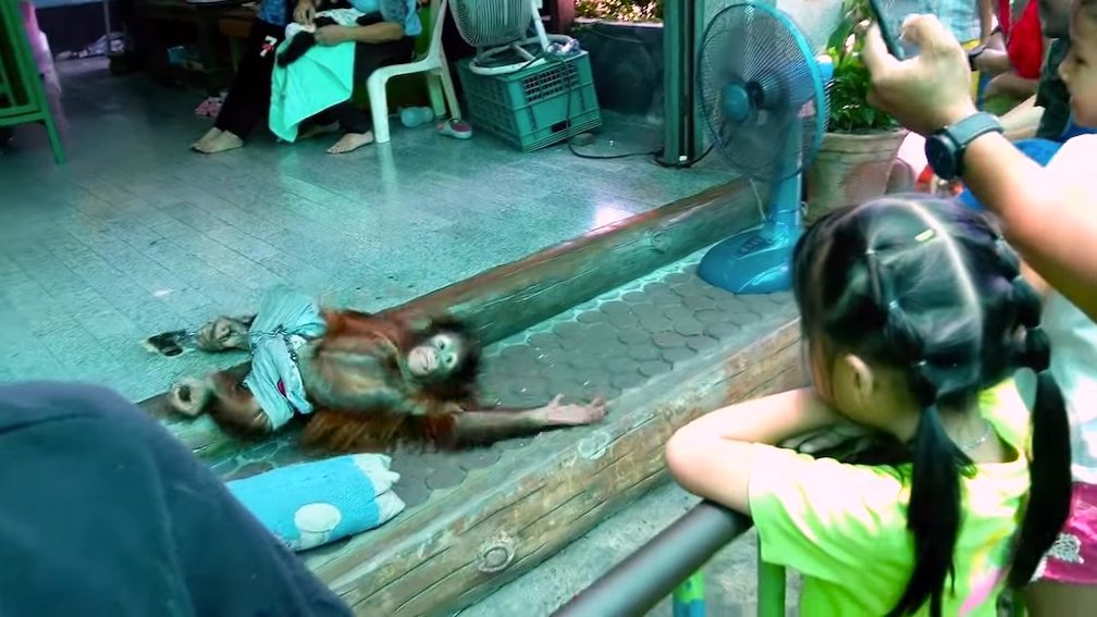 Samutprakarn Crocodile Farm & Zoo, not far from Bangkok, is a horror show of abused animals, including an endless string of baby orangutans, chimpanzees and tigers that pass through there, used as photo props and for degrading performances for fee-paying visitors. There are several similar facilities in Thailand that rake in money from the suffering of wildlife, most of which originate in the wild from criminal capture. Were the ‘kids’ held at Samutprakarn from the time they arrived in the Bangkok area up to their seizure in the sting of 21st December? We will probably never know.