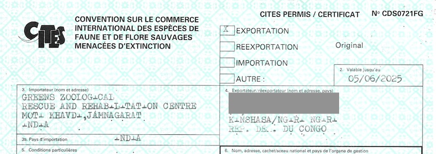 ICCN is currently collecting other animals listed in Vantara’s “rescue list”, including bonobos and gorillas. A concerned group of wildlife NGOs has drafted a letter to the CITES Secretariat detailing several instances of trade irregularities involving Vantara, including the chimpanzee trade reported here, and entreating amongst other measures that the Secretariat and the Standing Committee (SC) request that: