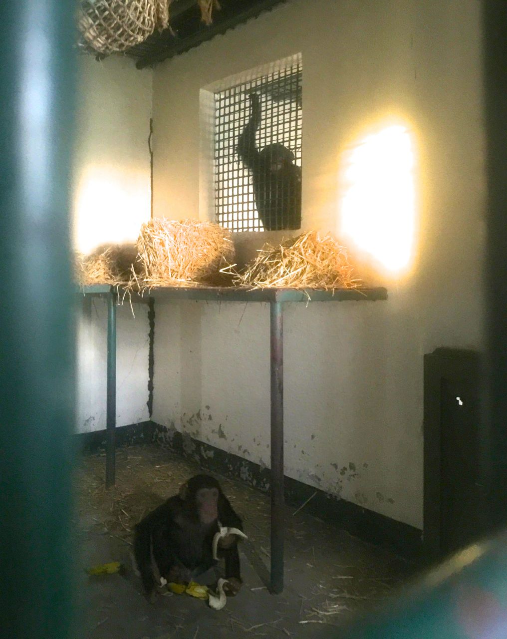 A chimpanzee waits for lunch at the National Center for Chimpanzee Care in Bastrop, Texas. (Photo: Shelby Knowles)