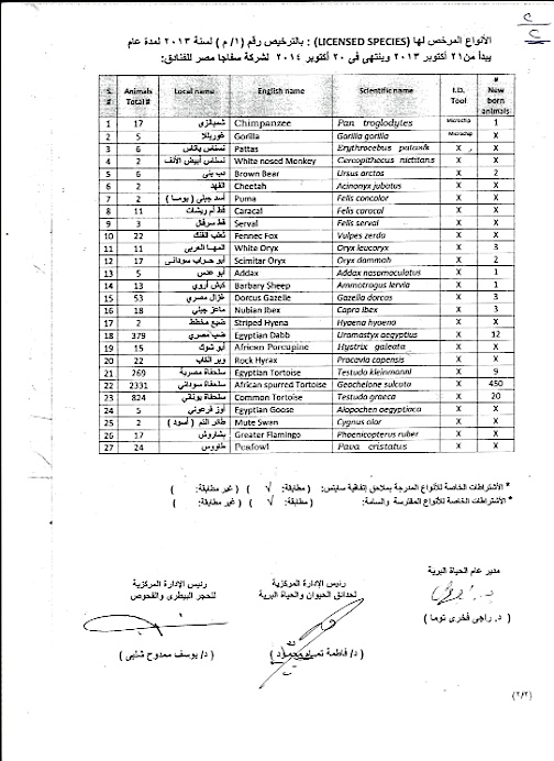 (Click to enlarge) The Tower Hotel permit list indicates that in early 2014 there were 17 chimpanzees and 5 gorillas in the breeding centre. Now there are 25. (photo courtesy of Dina Zulficar)