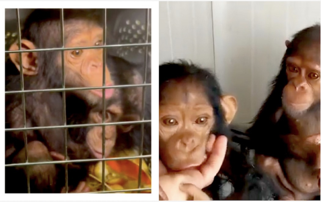 Four of the seven trafficked chimpanzees shown in the Iraqi’s WhatsApp chat, origin unknown. Images are screengrabs of videos supplied by Patricia Tricorache.